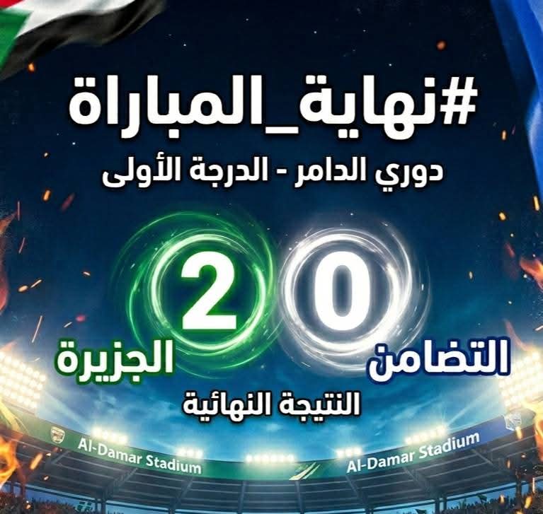 حقق نادي الجزيرة فوزاً مهماً ومستحقاً على حساب نادي التضامن بهدفين دون مقابل، في المباراة التي جرت مساء الأربعاء على استاد مدينة الدامر، ضمن منافسات الجولة الثانية من الدورة الثانية لدوري الدرجة الأولى بالدامر.