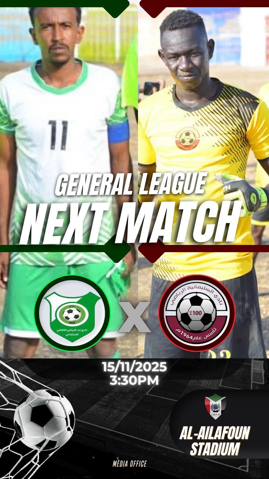 يختتم فريق الكرة بنادي السليمانية بطل جبل اولياء مبارياته في الدوري العام المؤهل للدوري السوداني الممتاز بلقاء نادي بدر العيلفون.