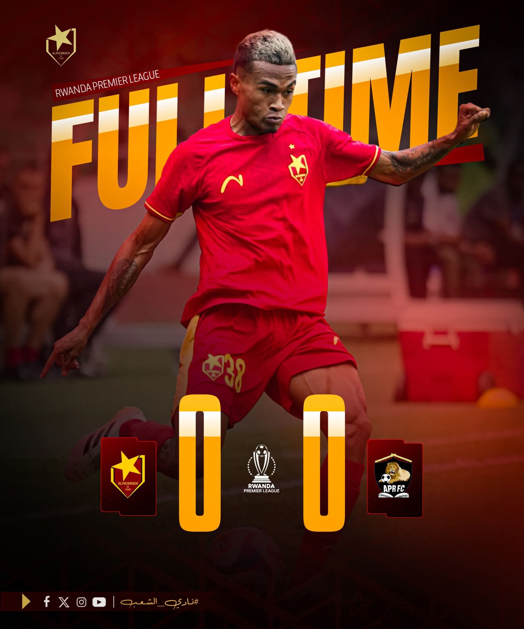 تعادل المريخ سلبيًّا مع الجبش الرواندي في المباراة التي أقيمت في الثالثة من عصر اليوم على استاد اماهورو الدولي ضمن مباريات الجولة الخامسة عشر من الدوري الرواندي وجاءت المباراة قوية ومثيرة بين الطرفين وسيطر المريخ علي معظم فترات المباراة ولاحت أمامه العديد من القرض المحققة التي كانت كفيلة بفوزه بنتيجة اللقاء وبالمقابل تحرك الجيش في الجزء الأخير من اللقاء ونجح في تسجيل هدفا منقوضا بداعي التسلل واجري المريخ تبديل اضطراري بخروج نيكولاس راندريا ومشاركة مجتبى فيصل لينتهي اللقاء بتعادل الفريقين بدون أهداف بهذه النتيجة يصل المريخ للنقطة “31” في المركز الرابع والجيش للنقطة “33” في المركز الثالث وخاض المريخ اللقاء بتوليفة ضمت كلا من لادجي سانو في حراسة المرمى سوغوبا، جينارد ميمبا، اوبينو شيسالا، داؤودا با، نيكولاس راندريا، جيدي فاتوكون، التاج يعقوب، فادي كوليبالي، بشير بانغورا، فينو هاسينا.