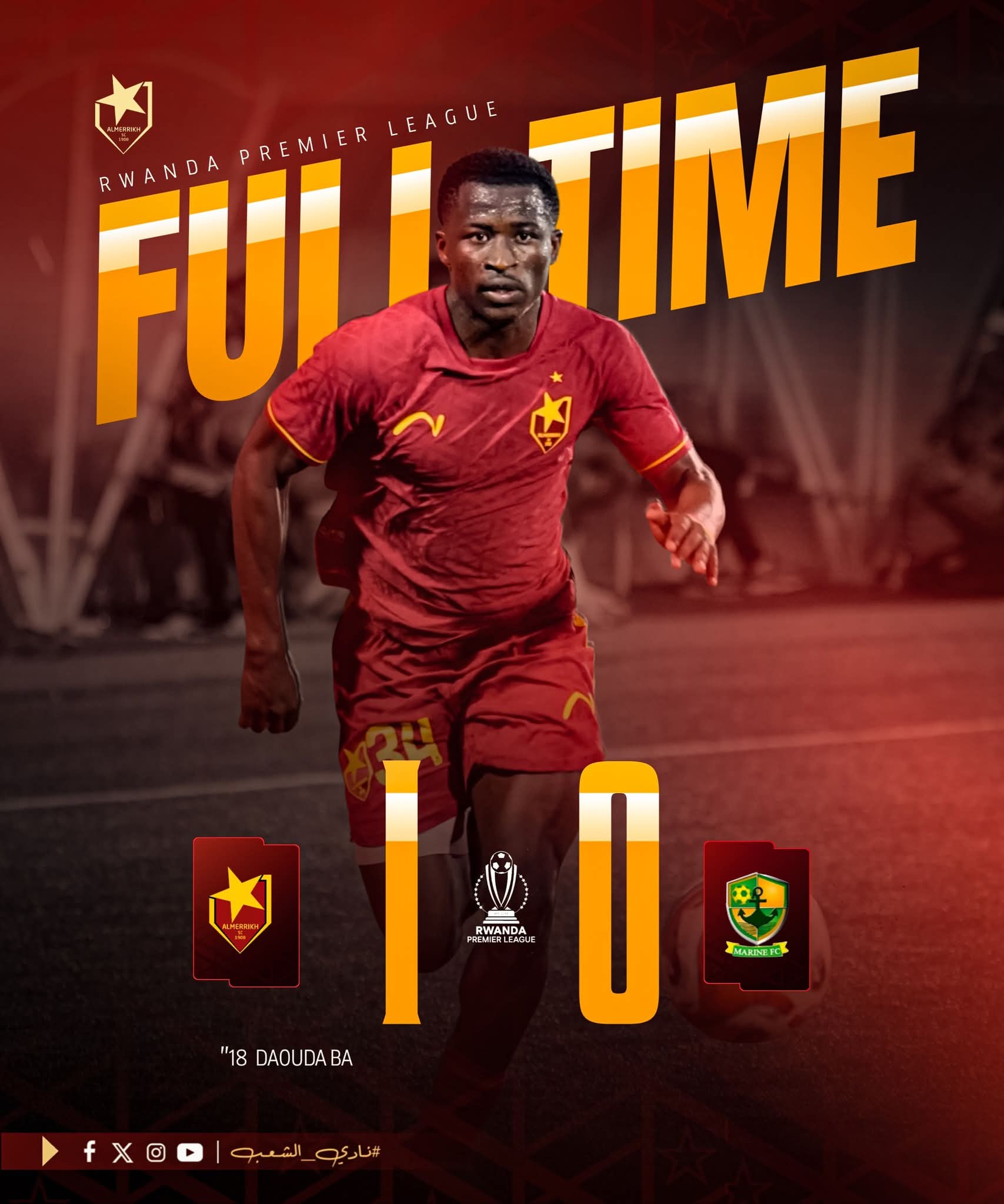 واصل المريخ انتصاراته في الدوري الرواندي وحقق فوزا غالبا على فريق مارين إف سي، في المباراة التي أقيمت مساء اليوم ضمن مباريات الجولة الحادية عشر من المسابقة، وسجل هدف اللقاء الوحيد المحترف السنغالي داودا با في الدقيقة 18 من الشوط الاول من يساربة قوية سكنت المرمى ومنحت الفريق الثلاث نقاط وجاءت المباراة حافلة بالندية والإثارة، بالنتيجة ارتفع المريخ برصيده الي ١٢ نفطة وتبفي مارين في نقاطه ال 18 ودفع المدرب الصربي دراكو نوفيتش بتشكيلة ضمت كلا من لادجي سانو في حراسة المرمى، سوغوبا، جينارد ميمبا، اوبينو شيسالا، عبد اللطيف أدم، داؤودا با، نيكولاس راندريا، جيدي فاتوكون، المصباح فيصل، فينو هاسينا، موسي كمارا.