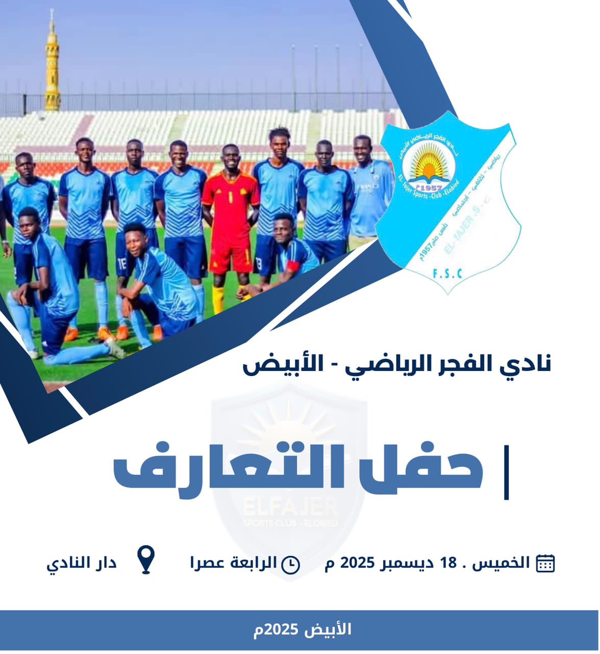 قرر مجلس ادارة نادي الفجر الابيض الصاعد حديثا للدوري الممتاز اقامة حفل تعارف لاعبيه الجدد والجهاز الفني يوم الخميس المقبل بدار النادي تمهيدا لانطلاقة اعداد الفريق للممتاز الذي ينطلق يوم السابع من يناير المقبل