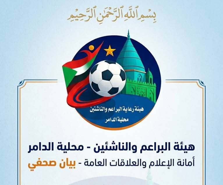 تُناشد هيئة البراعم والناشئين بمحلية الدامر جميع الأندية التابعة لها، بضرورة تجميع لاعبيها من فئة البراعم والناشئين (مواليد 2010م فما فوق)، وذلك في إطار الترتيبات الجارية لتكوين منتخب يمثل محلية الدامر في المنافسات والاستحقاقات الرياضية القادمة.
